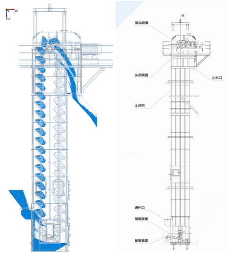 下圖為板鏈斗式提升機(jī)內(nèi)外部結(jié)構(gòu)圖: